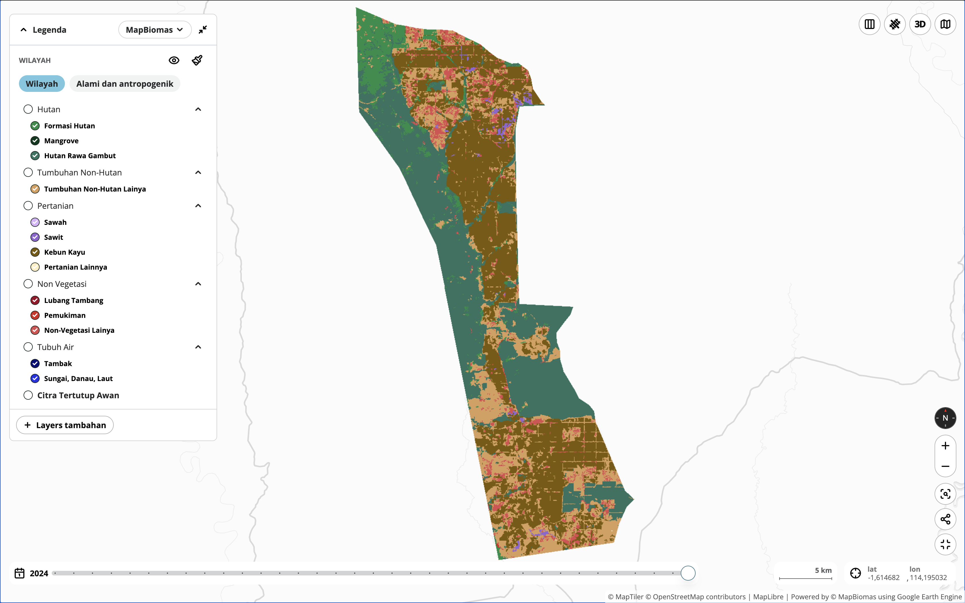 Peta kondisi lahan wilayah Desa Humbang Raya yang berada dalam konsesi PT Industrial Forest Plantation pada 2024. Sumber: Mapbiomas Indonesia.