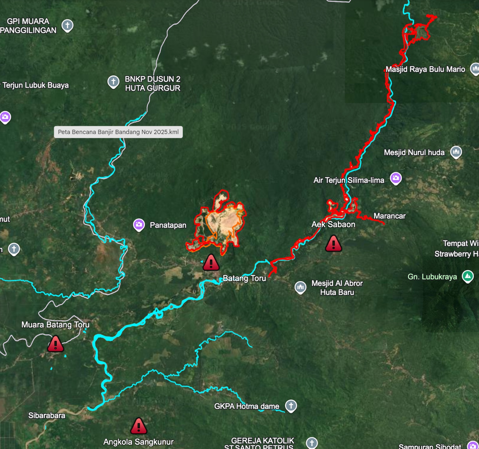 Kombinasi antara ekspansi tambang, pembangunan infrastruktur berskala besar, serta hilangnya tutupan hutan di ekosistem Batang Toru menciptakan tekanan yang saling memperparah. Ruang resapan air hilang, struktur tanah melemah, dan bentang alam diubah secara masif, maka risiko banjir bandang dan longsor meningkat tajam.