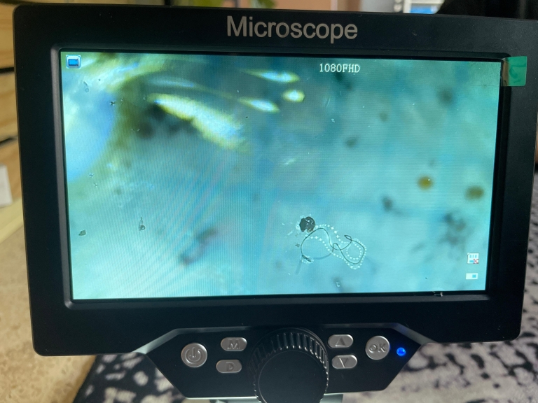 Temuan salah satu mikroplastik di air hujan Malang Raya dilihan dalam mikroskop: Foto: Ecoton