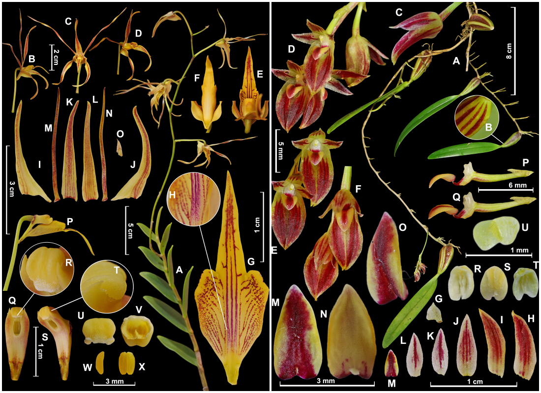 Sementara itu, Bulbophyllum ewamiyiuu berukuran lebih kecil, hanya sekitar 8–12 cm dengan satu helai daun di setiap pseudobulb. “Bunganya memang kecil, hanya sekitar 5–6 mm, tetapi warnanya sangat menarik. Sepal dan petalnya berwarna dasar kuning dengan semburat merah marun yang kontras,” kata Destario.