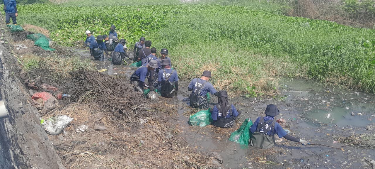 Mereka membersihkan sampah dan enceng gondok di Sungai Kamambang untuk memperingati Hari Bersih Dunia 2025, Jumat, 3 Oktober lalu.
